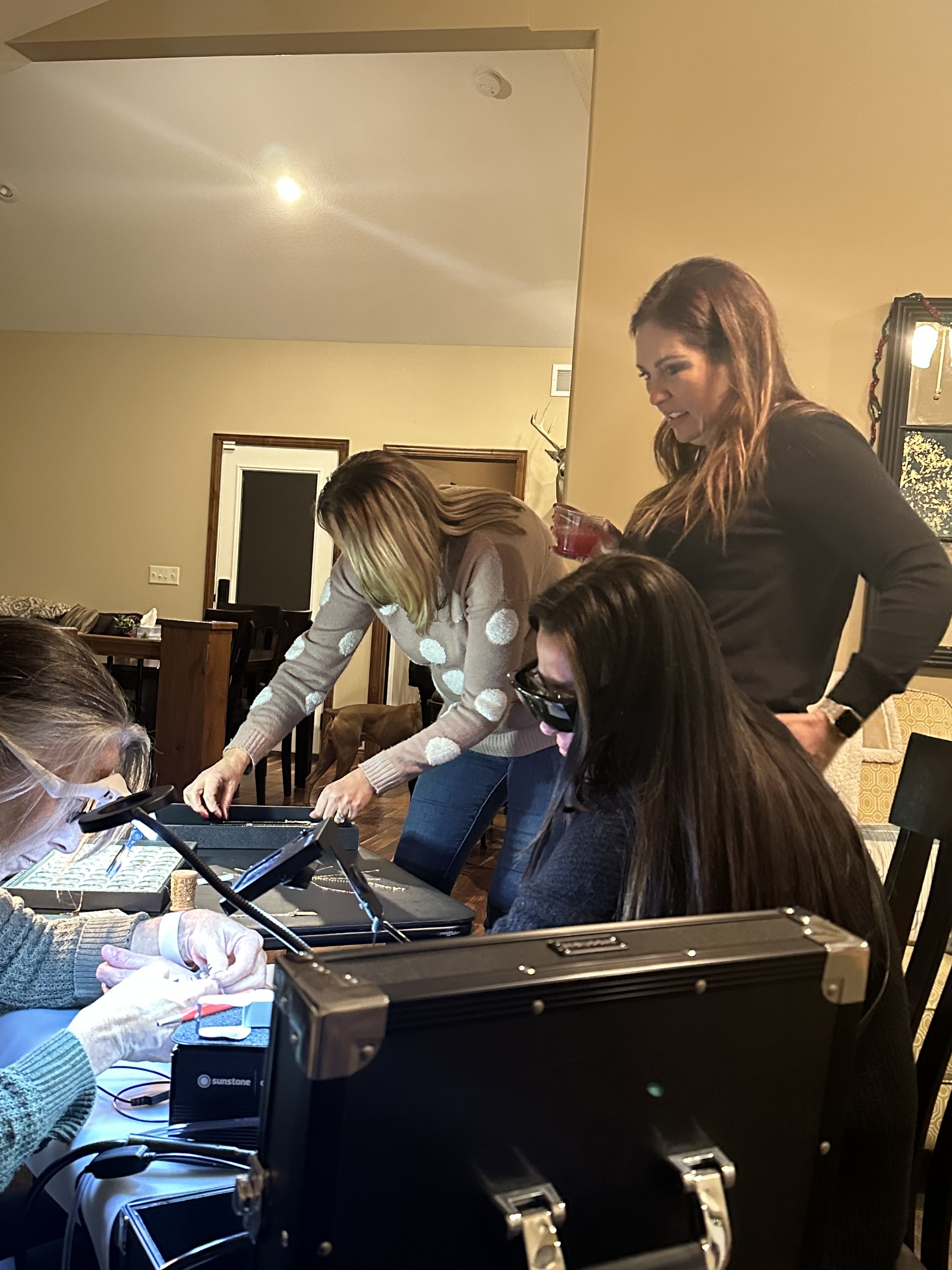Host us at your place or our studio! No better way to connect the bonds of friendship than with matching forever bracelets!! The guests are all invited by you! This is fun to add as an employee appreciation, a birthday party, holiday open house ... just about any occasion calls for a dainty, yet durable piece of 14K gold jewelry. Permanent jewelry is all the rage on TikTok ... check it out! Your friends will thank you! CONTACT US to discuss scheduling a private party!